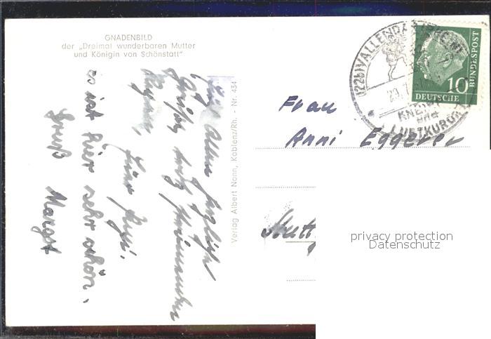 72132451 alte Postkarte Schoenstatt Vallendar Gnadenbild der Dreimal wunderbaren Mutter und Koenigin von Schoenstatt postalisch gelaufen Erhaltung siehe scans KatCode: 11110007137226