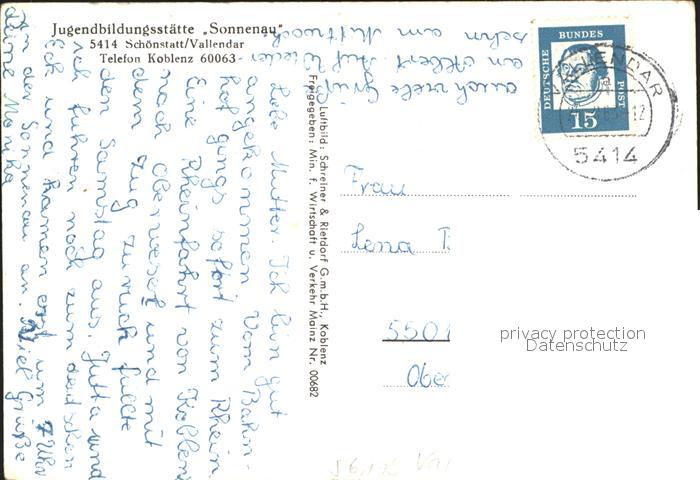 31919946 alte Postkarte Schoenstatt Vallendar Jugendbildungsstaette Sonnenau postalisch gelaufen KatCode: 11110007137226