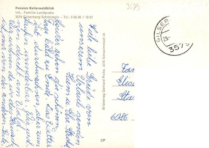 73935300 alte Postkarte Schoenstein Hessen Pension Kellerwaldblick postalisch gelaufen Erhaltung siehe scans [FriedD77] KatCode: 11110006634006