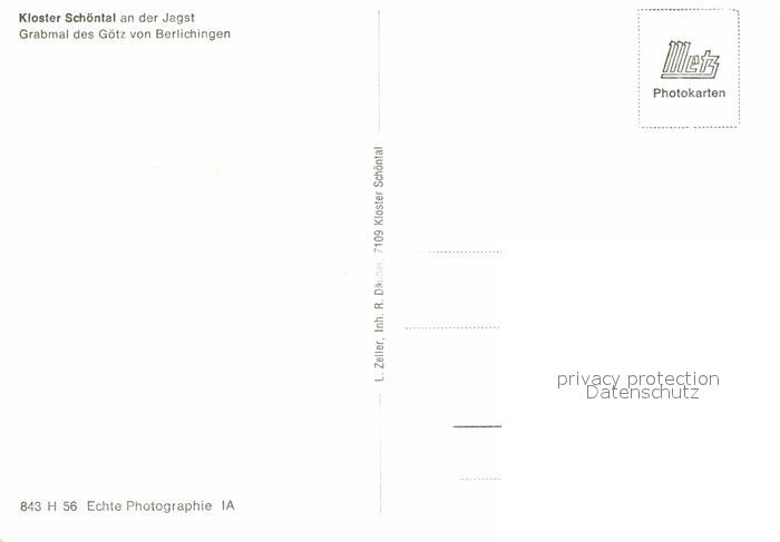 72632426 Schoental Jagst Grabmal des Goetz von Berlichingen Kloster postalisch nicht gelaufen Erhaltung siehe scans [FriedD77] KatCode: 11110008126072