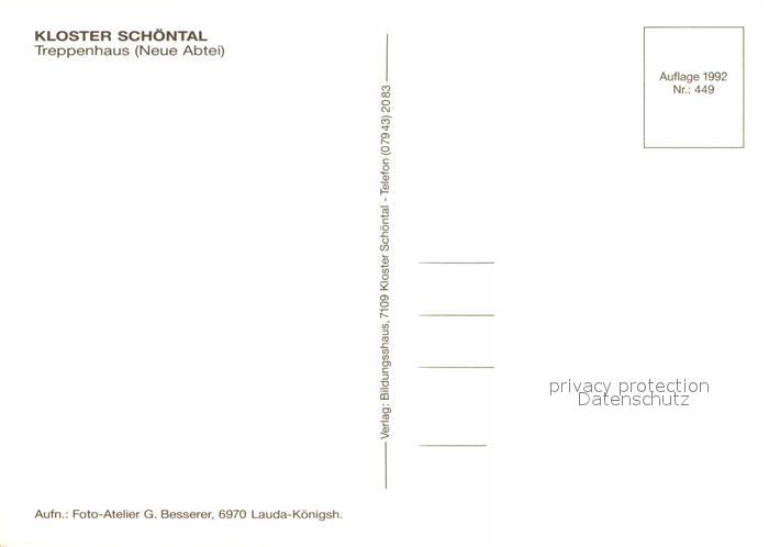 72628494 Schoental Jagst Kloster Schoental Treppenhaus Neue Abtei postalisch nicht gelaufen Erhaltung siehe scans [WerneD78] KatCode: 11110008126072