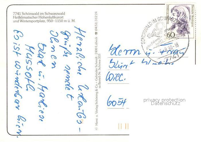 73190293 alte Postkarte Schoenwald Schwarzwald postalisch gelaufen Erhaltung siehe scans [NatalD47] KatCode: 11110008326054
