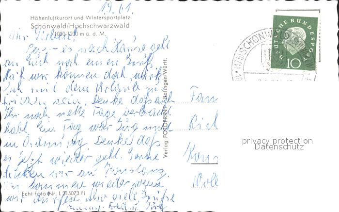 72311769 alte Postkarte Schoenwald Schwarzwald postalisch gelaufen Erhaltung siehe scans KatCode: 11110008326054