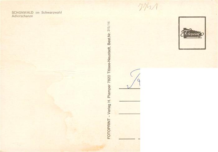73926894 Schoenwald Schwarzwald Adlerschanze postalisch nicht gelaufen Erhaltung siehe scans [FriedD77] KatCode: 11110008326054