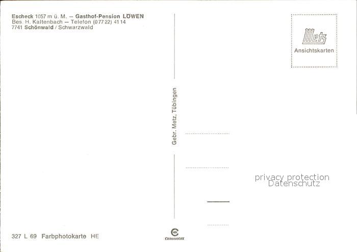 72034292 Schoenwald Schwarzwald Escheck Gasthof Pension Loewen postalisch nicht gelaufen Erhaltung siehe scans KatCode: 11110008326054
