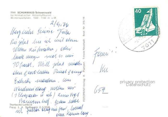 73005251 alte Postkarte Schoenwald Schwarzwald Fliegeraufnahme postalisch gelaufen Erhaltung siehe scans [WerneD78] KatCode: 11110008326054