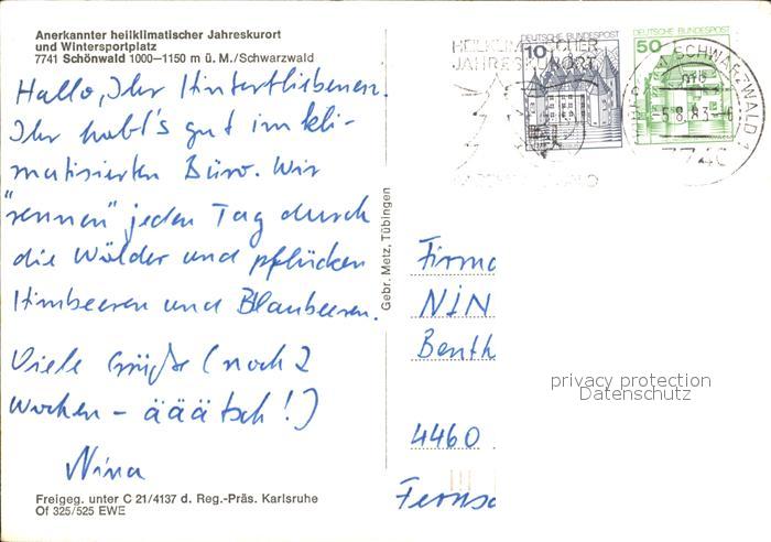 72244009 Schoenwald Schwarzwald Fliegeraufnahme postalisch nicht gelaufen Erhaltung siehe scans KatCode: 11110008326054