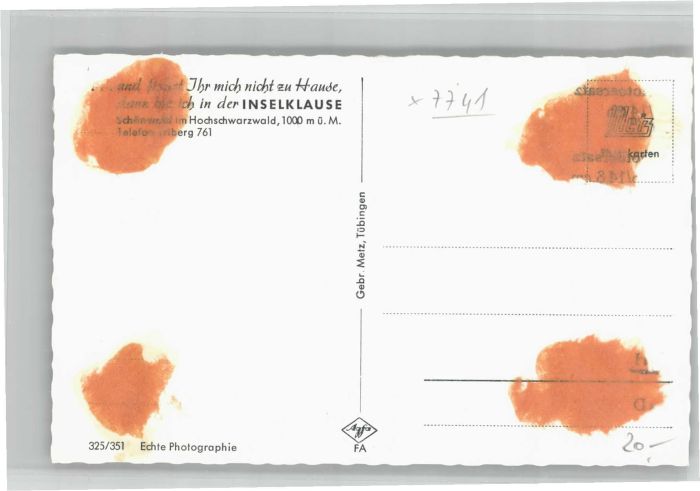 40732058 Schoenwald Schwarzwald Gasthaus Inselklause postalisch nicht gelaufen Alte Ansichtskarte Postkarte Katcode 11110008326054