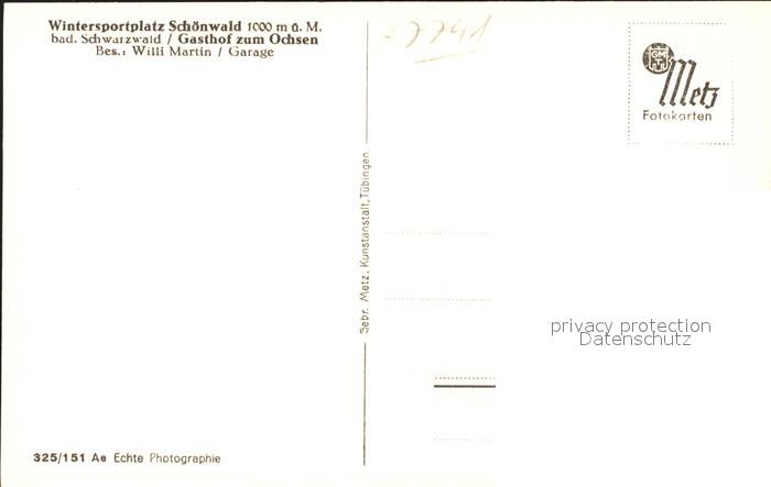 41759759 Schoenwald Schwarzwald Gasthaus zum Ochsen postalisch nicht gelaufen Erhaltung siehe scans KatCode: 11110008326054