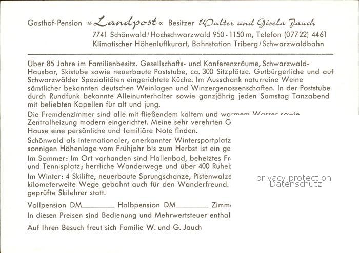 72286611 Schoenwald Schwarzwald Gasthof Pension Landpost postalisch nicht gelaufen Werbekarte (keine Postkarte) Erhaltung siehe scans KatCode: 11110008326054
