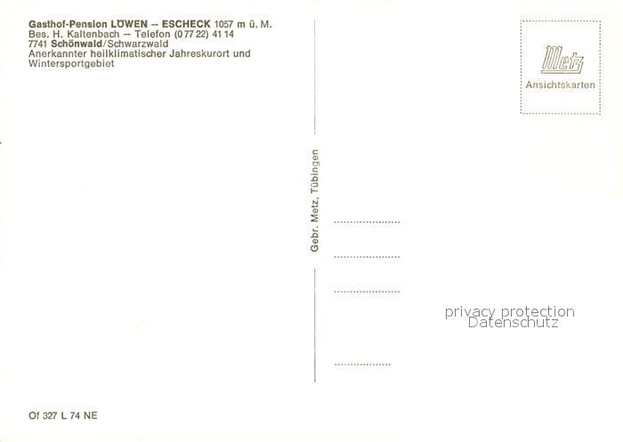 73045356 Schoenwald Schwarzwald Gasthof Pension Loewen Escheck postalisch nicht gelaufen Erhaltung siehe scans [WerneD78] KatCode: 11110008326054