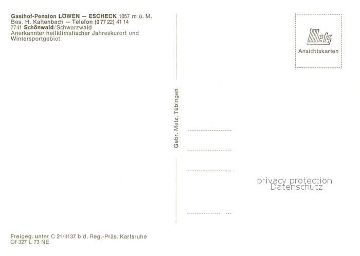 73022352 Schoenwald Schwarzwald Gasthof-Pension Loewen-Escheck postalisch nicht gelaufen Erhaltung siehe scans [PaolaD17] KatCode: 11110008326054