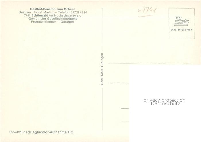 73845863 Schoenwald Schwarzwald Gasthof Pension zum Ochsen Gastraum postalisch nicht gelaufen Erhaltung siehe scans [FriedD77] KatCode: 11110008326054