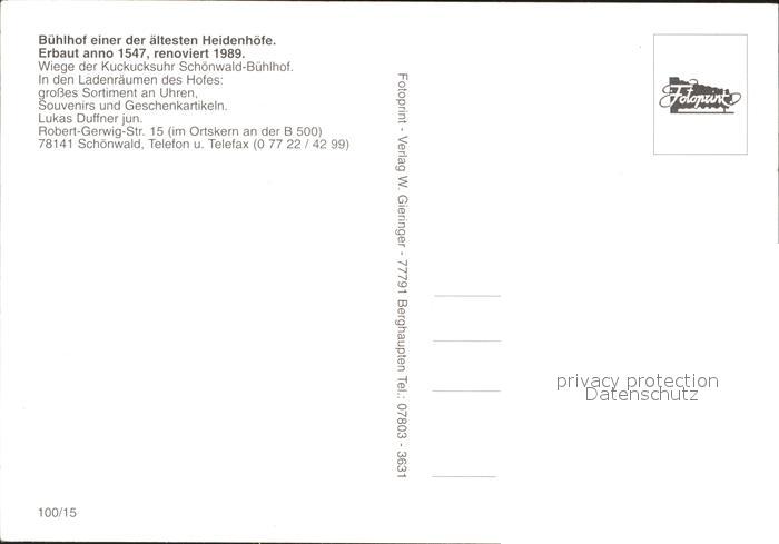 72037893 Schoenwald Schwarzwald Heidenhof Buehlhof postalisch nicht gelaufen Erhaltung siehe scans KatCode: 11110008326054