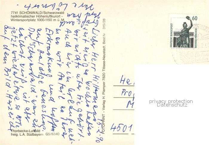 73687401 alte Postkarte Schoenwald Schwarzwald Heilklimatischer Kurort Fliegeraufnahme postalisch gelaufen Erhaltung siehe scans [FriedD77] KatCode: 11110008326054