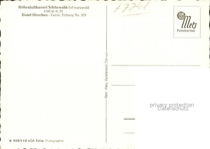 41759984 Schoenwald Schwarzwald Hotel Hirschen postalisch nicht gelaufen KatCode: 11110008326054
