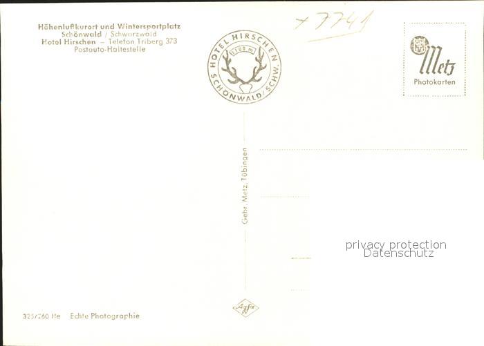 41759778 Schoenwald Schwarzwald Hotel Hirschen postalisch nicht gelaufen Erhaltung siehe scans KatCode: 11110008326054