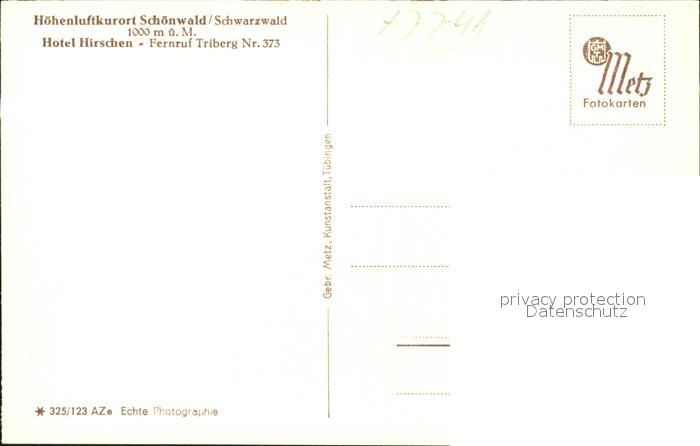 41759767 Schoenwald Schwarzwald Hotel Hirschen postalisch nicht gelaufen Erhaltung siehe scans KatCode: 11110008326054