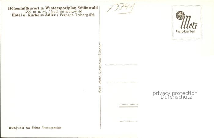 41759758 Schoenwald Schwarzwald Hotel Kurhaus Adler postalisch nicht gelaufen Erhaltung siehe scans KatCode: 11110008326054