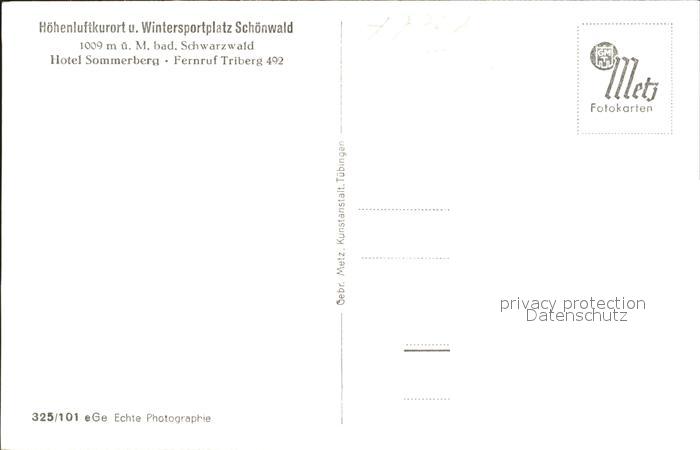 41760276 Schoenwald Schwarzwald Hotel Sommerberg postalisch nicht gelaufen Erhaltung siehe scans KatCode: 11110008326054