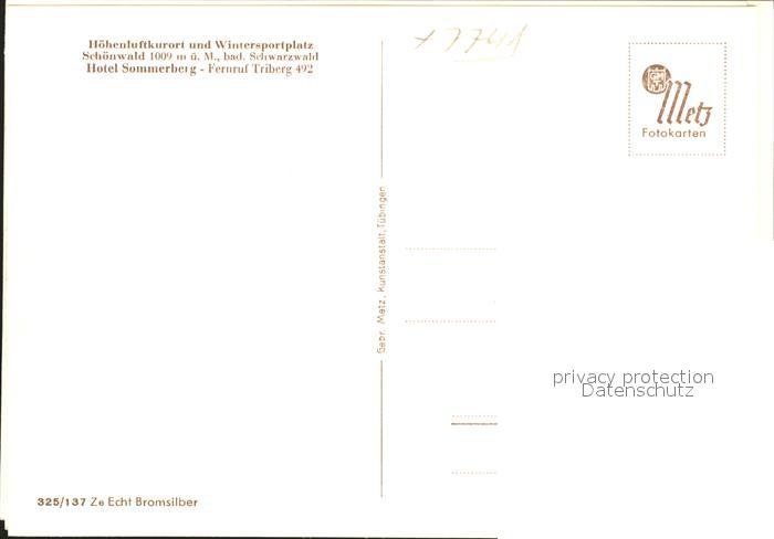 41759981 Schoenwald Schwarzwald Hotel Sommerberg postalisch nicht gelaufen Erhaltung siehe scans KatCode: 11110008326054