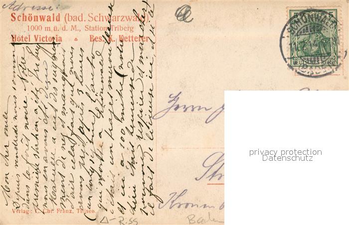 43492950 alte Postkarte Schoenwald Schwarzwald Hotel Victoria Panorama postalisch gelaufen Erhaltung siehe scans [KathaD81] KatCode: 11110008326054