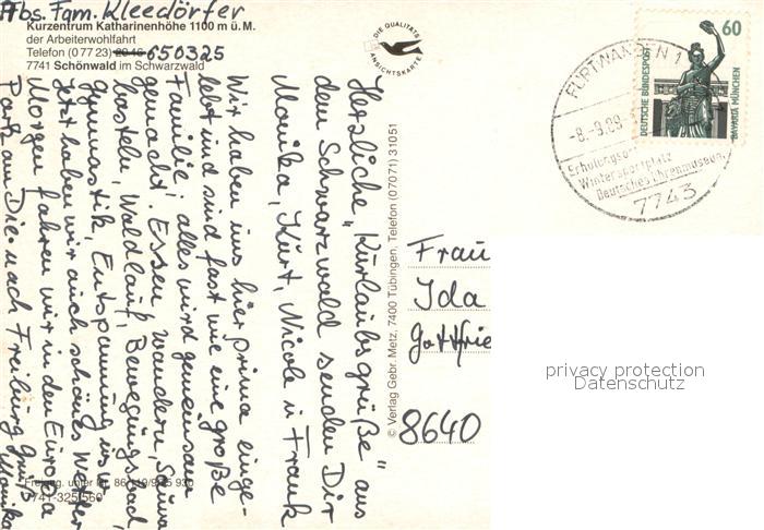 73712729 alte Postkarte Schoenwald Schwarzwald Kurzentrum Katharinenhoehe der AWO postalisch gelaufen Fliegeraufnahme Erhaltung siehe scans [FriedD77] KatCode: 11110008326054