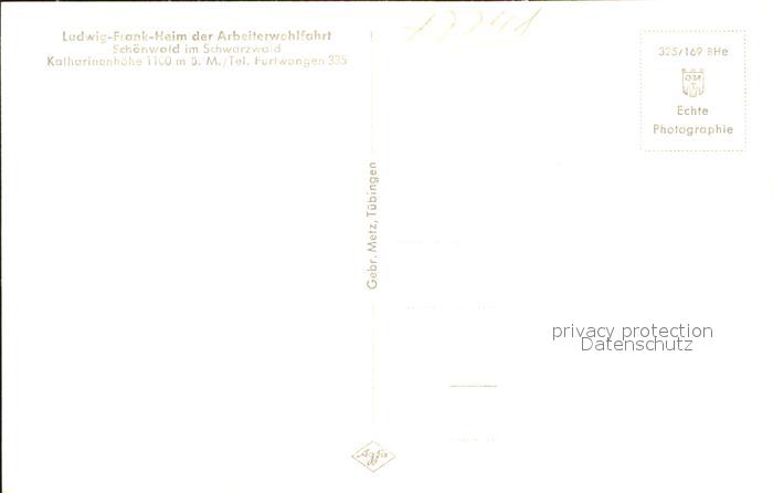 41759232 Schoenwald Schwarzwald Ludwig Frank Heim Arbeiterwohlfahrt postalisch nicht gelaufen Erhaltung siehe scans KatCode: 11110008326054