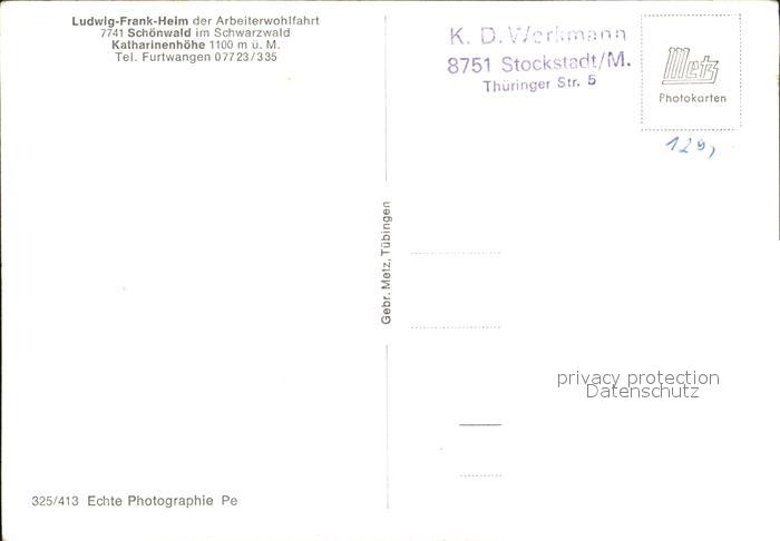 72460102 Schoenwald Schwarzwald Ludwig Frank Heim postalisch nicht gelaufen Erhaltung siehe scans KatCode: 11110008326054