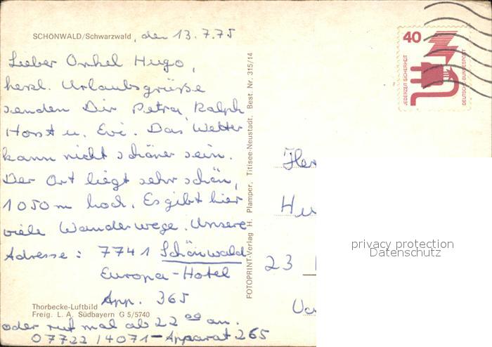 72481046 alte Postkarte Schoenwald Schwarzwald Luftaufnahme postalisch gelaufen Erhaltung siehe scans KatCode: 11110008326054