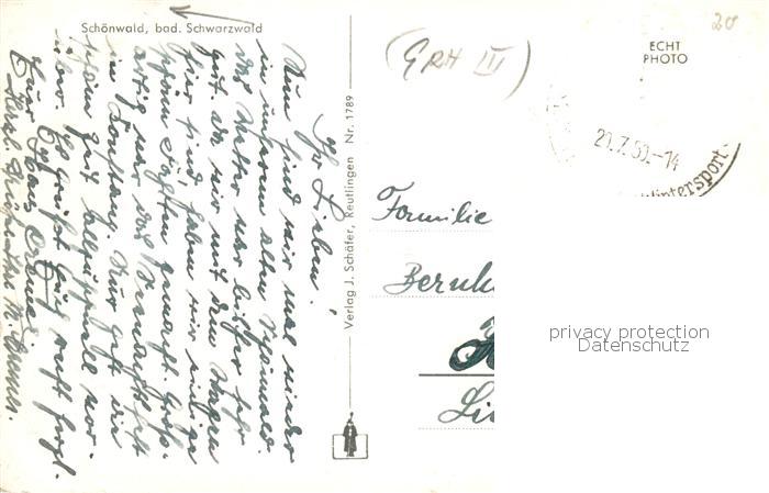 73803147 alte Postkarte Schoenwald Schwarzwald Ortsansicht postalisch gelaufen Erhaltung siehe scans [FriedD77] KatCode: 11110008326054