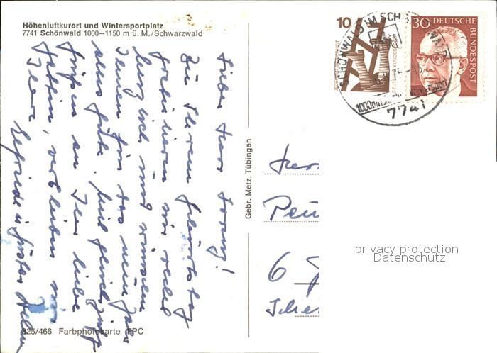 72493742 alte Postkarte Schoenwald Schwarzwald Ortsansicht mit Kirche Hoehenluftkurort Wintersportplatz postalisch gelaufen Erhaltung siehe scans KatCode: 11110008326054