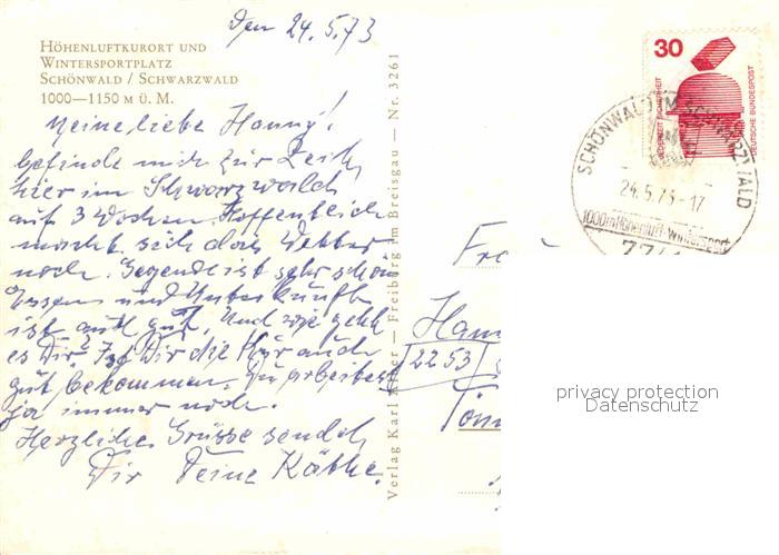 72700657 alte Postkarte Schoenwald Schwarzwald Panorama postalisch gelaufen Erhaltung siehe scans [WerneD78] KatCode: 11110008326054