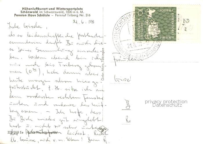 73785026 alte Postkarte Schoenwald Schwarzwald Pension Haus Schaetzle Aussenansicht postalisch gelaufen Erhaltung siehe scans [LiesaD40] KatCode: 11110008326054