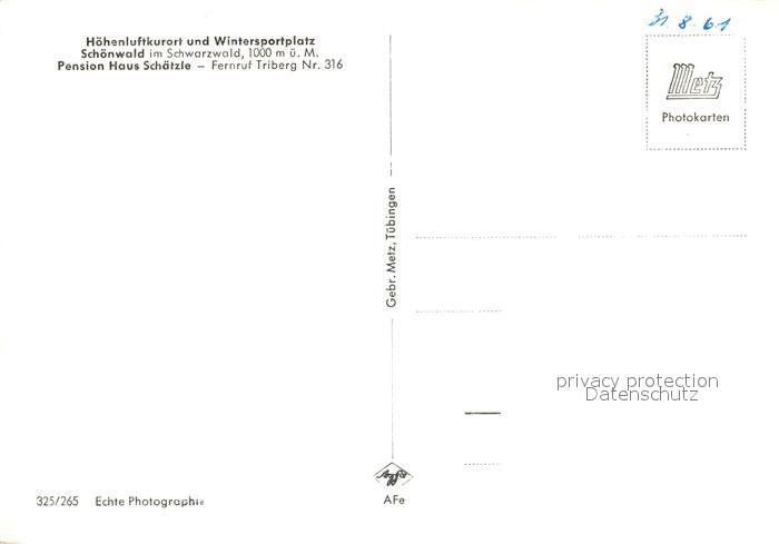 73171752 Schoenwald Schwarzwald Pension Schaetzle postalisch nicht gelaufen Erhaltung siehe scans [NatalD47] KatCode: 11110008326054