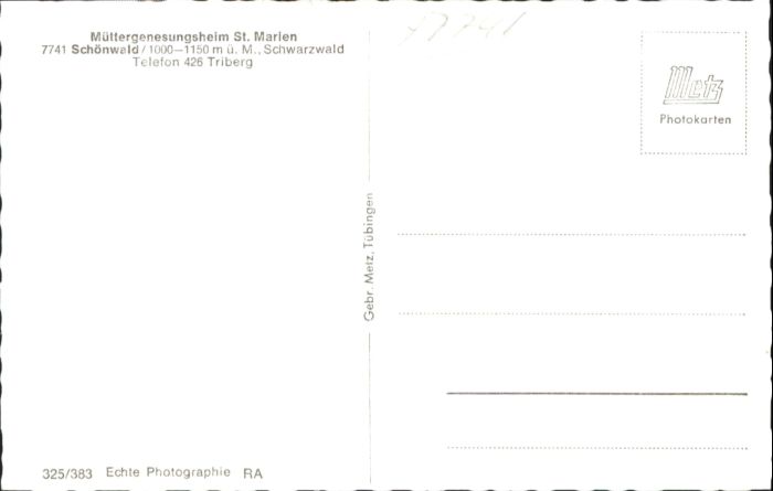 40767086 Schoenwald Schwarzwald Schönwald Müttergenesungsheim St. Marien * KatCode 11110008326054