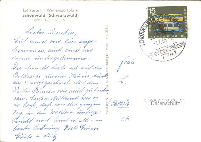 alte Postkarte Schoenwald Schwarzwald Schwimmbad postalisch gelaufen Erhaltung siehe scans