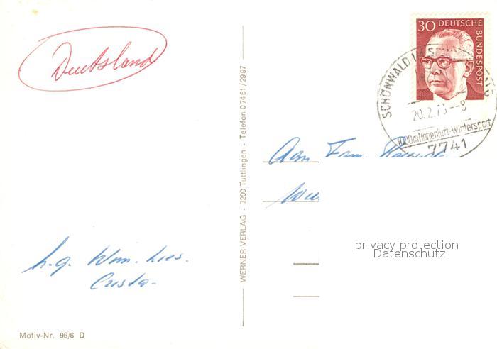 72942127 alte Postkarte Schoenwald Schwarzwald Winterpanorama Kurort Wintersportplatz Skisprungschanze postalisch gelaufen Erhaltung siehe scans [FriedD77] KatCode: 11110008326054