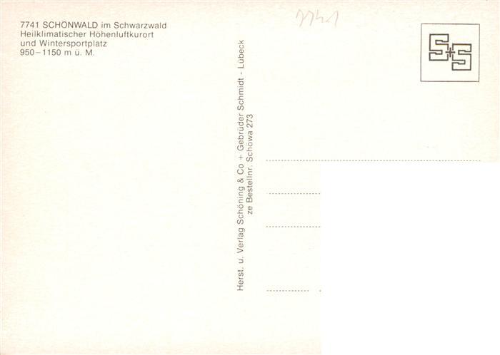 73926935 Schoenwald Schwarzwald Winterpanorama Teilansichten Langlaeufer postalisch nicht gelaufen Erhaltung siehe scans [FriedD77] KatCode: 11110008326054