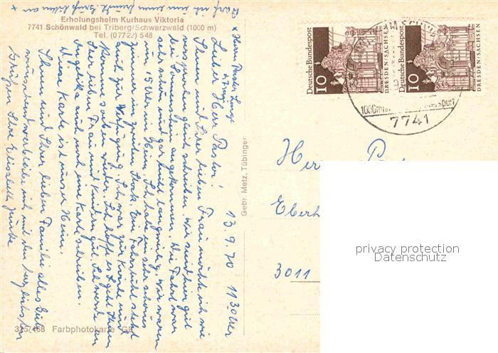 72803576 alte Postkarte Schoenwald Triberg Erholungsheim Kurhaus Viktoria postalisch gelaufen Erhaltung siehe scans [FriedD77] KatCode: 11110008326060