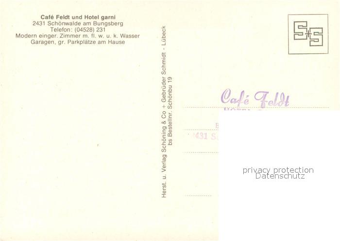 73726253 Schoenwalde Bungsberg Feldts Cafe und Hotel garni Fremdenzimmer postalisch nicht gelaufen Erhaltung siehe scans [FriedD77] KatCode: 11110001055038