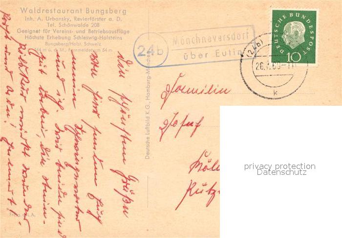 73017205 alte Postkarte Schoenwalde Bungsberg Waldrestaurant Bungsberg postalisch gelaufen Erhaltung siehe scans [NatalD47] KatCode: 11110001055038