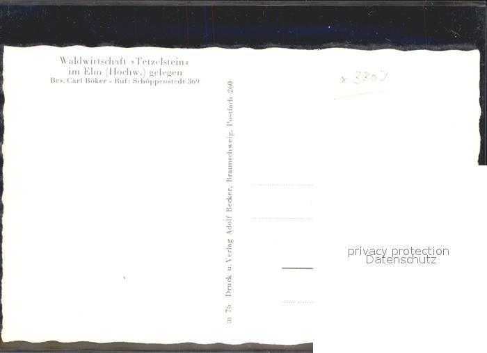 41988959 Schoeppenstedt Waldwirtschaft Tetzelstein im Elm postalisch nicht gelaufen Erhaltung siehe scans KatCode: 11110003158027