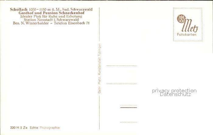 41759618 Schollach Eisenbach (Hochschwarzwald) Gasthaus Pension Schneckenhof postalisch nicht gelaufen Erhaltung siehe scans KatCode: 11110008315031