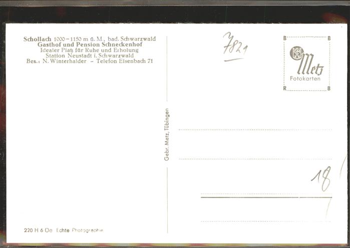 41391802 Schollach Eisenbach (Hochschwarzwald) Gasthof Pension Schneckenhof postalisch nicht gelaufen gute Erhaltung KatCode: 11110008315031
