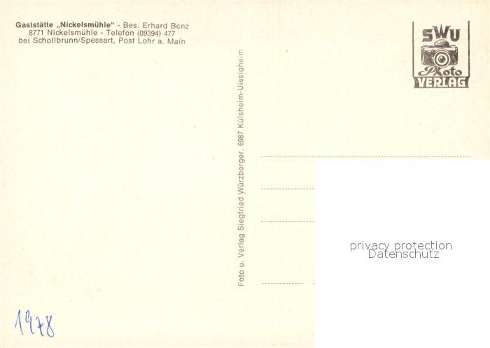 73081253 Schollbrunn Spessart Gaststaette Nickelsmuehle postalisch nicht gelaufen Erhaltung siehe scans [FriedD77] KatCode: 11110009677182