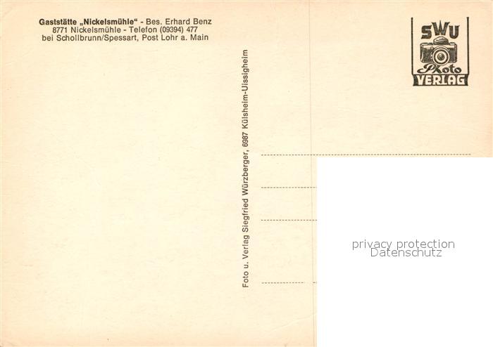 73029118 Schollbrunn Spessart Gaststaette Nickelsmuehle postalisch nicht gelaufen Erhaltung siehe scans [KathaD81] KatCode: 11110009677182