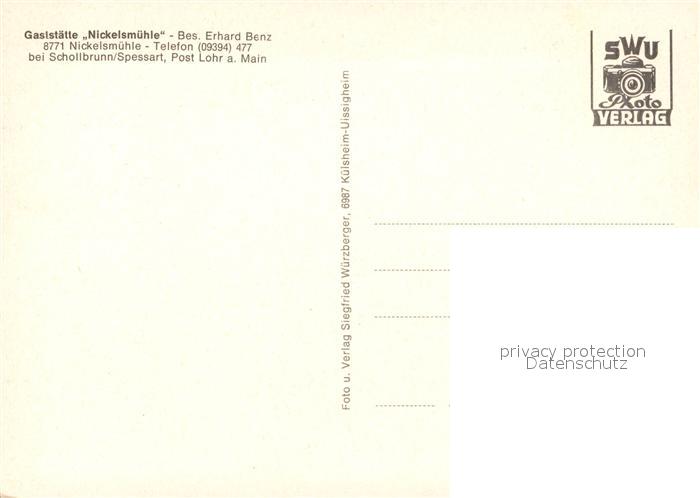 73087589 Schollbrunn Spessart Gaststaette nickelsmuehle postalisch nicht gelaufen Erhaltung siehe scans [KathaD81] KatCode: 11110009677182