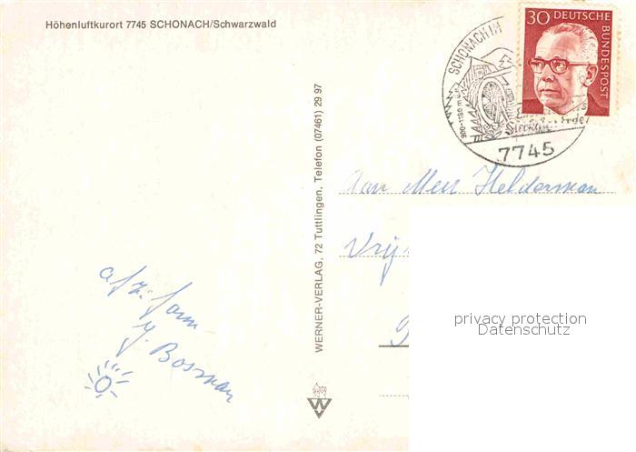72655714 alte Postkarte Schonach Schwarzwald postalisch gelaufen Erhaltung siehe scans [LiesaD40] KatCode: 11110008326055