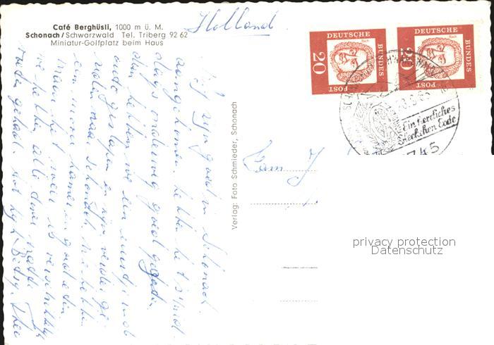 72468399 alte Postkarte Schonach Schwarzwald Cafe Berghuesli postalisch gelaufen Erhaltung siehe scans KatCode: 11110008326055